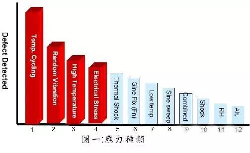 應(yīng)根據(jù)對產(chǎn)品篩選的效果選擇相應(yīng)的環(huán)境應(yīng)力。對電子產(chǎn)品,快速溫變試驗箱(ESS)的應(yīng)力主要選擇溫度(高、低溫)循環(huán)試驗和振動試驗,這兩種應(yīng)力的組合篩選效果較好,能暴露產(chǎn)品各組裝等級大部分故障。